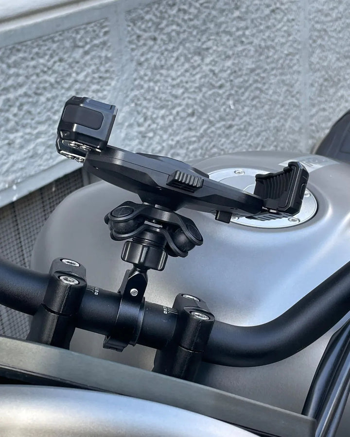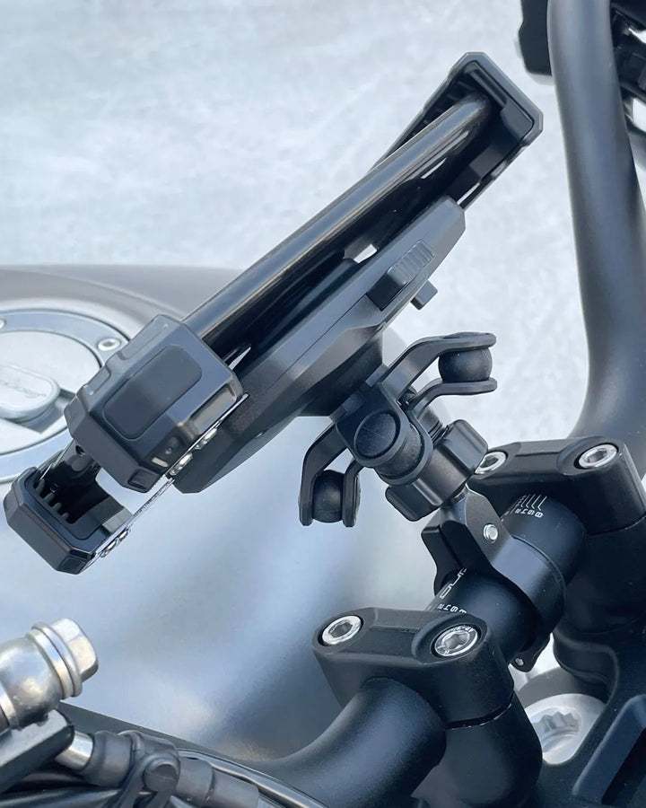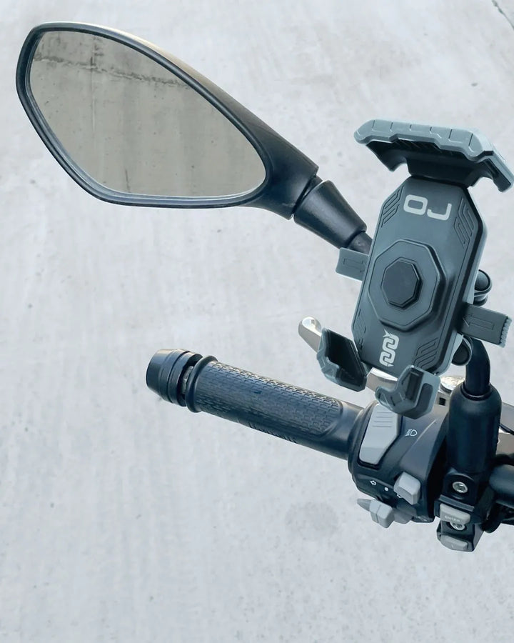 Za motocikliste koji ne prihvaćaju kompromise, OJ Holder Grip predstavlja vrhunsko rješenje za siguran, stabilan i visokokvalitetan nosač. Dizajniran za maksimalnu funkcionalnost i izdržljivost, ovaj dodatak vam omogućuje da pametni telefon držite pri ruci na svakoj vožnji, bez žrtvovanja sigurnosti. Zahvaljujući sustavu brzog zatvaranja (Fast Closure Button), uređaj možete jednostavno pričvrstiti i ukloniti jednostavnim pokretom, dok Damper System učinkovito smanjuje vibracije, štiteći vaš pametni telefon od udaraca i naglih pokreta, čak i na neravnom terenu. Za još veću zaštitu, stražnja sigurnosna brava čvrsto drži vaš pametni telefon usidren za držač, osiguravajući da ostane stabilan čak i u najturbulentnijim situacijama. Rotacija od 360° omogućuje vam savršeno prilagođavanje orijentacije vašeg uređaja, bez obzira želite li ga koristiti u portretnom ili pejzažnom načinu rada za optimalnu navigaciju ili za odgovaranje na pozive bez ometanja. Trostruki sustav montaže nudi potpunu fleksibilnost, omogućujući vam da birate između upravljača, kraka retrovizora ili podnožja retrovizora (pribor uključen), za sigurnu i praktičnu montažu, bez obzira na model vašeg motocikla. Izrađen od visokokvalitetnih materijala poput ojačane plastike i metala, ovaj držač za pametni telefon napravljen je da traje, lako se noseći s izazovima svake ceste. Njegov elegantan, moderan dizajn nadopunjuje estetiku vašeg motocikla. Idealne je veličine za pametne telefone različitih veličina, s maksimalnom širinom od 9 cm i podesivim duljinama između 15 cm i 19,5 cm. Nosač je kompatibilan s upravljačima od 1 cm do 2,5 cm, nudeći široku kompatibilnost s raznim motociklima. S OJ Holder Grip, svaka vožnja postaje sigurnije, udobnije i tehnološki naprednije iskustvo. Više od samog nosača, to je pravi saveznik na cesti.