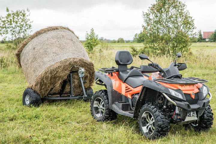 Prikolica za bale za prijevoz sijena u rolama.